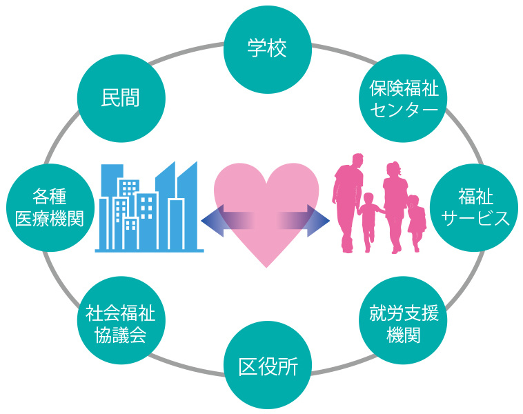 ・問題解決には、行政・地域の福祉、医療、教育、法律関係者などと連携しながら行います
