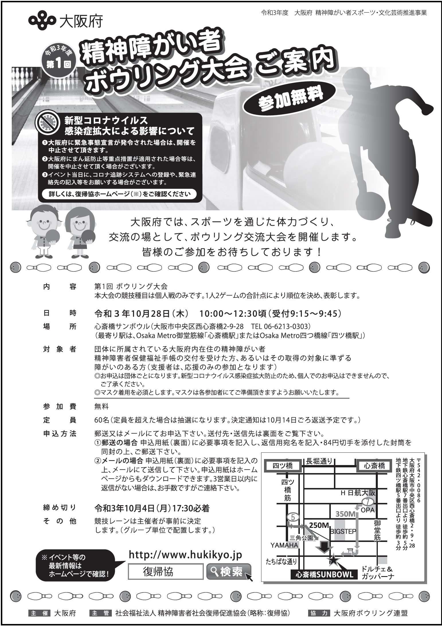 | 主催等 | 主催:大阪府 主管:社会福祉法人精神障害者社会復帰促進協会 協力:大阪府ボウリング連盟 |