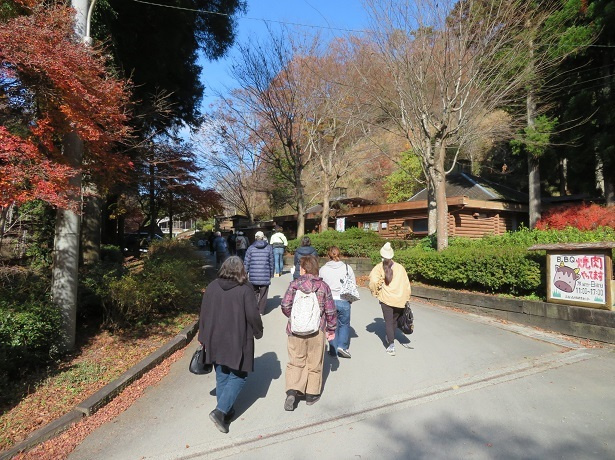 高槻しいたけセンターでバスを降りると、空気が美味しい!最後の紅葉も楽しむことができました。「空気が澄んでいる」「大阪にもこんなところがあるんだなあ」という声が聞こえてきます。